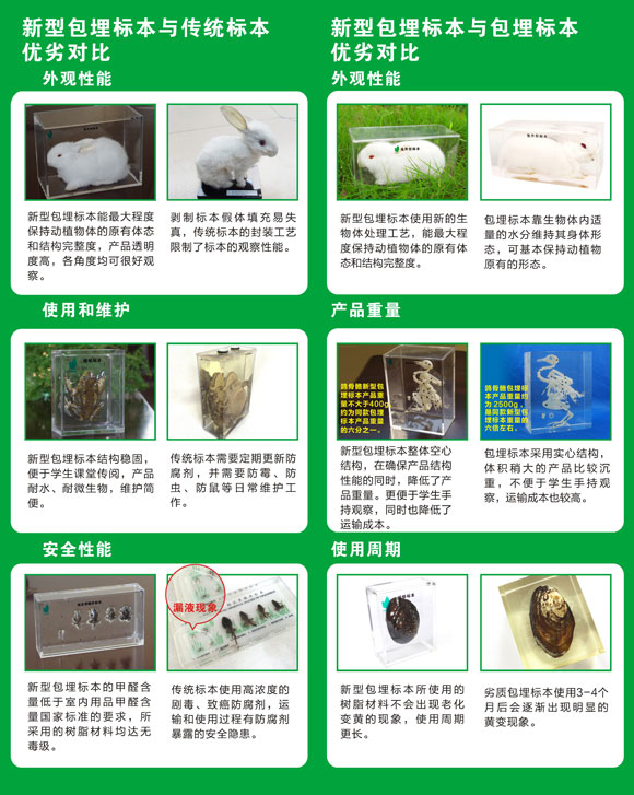 新型包埋標(biāo)本的特點(diǎn) ◆輕盈便攜、透明直觀:產(chǎn)品為空心結(jié)構(gòu),輕便易觀察。 ◆安全環(huán)保、自然真實(shí):使用包埋材料和封裝材料環(huán)保安全。先進(jìn)的動植物干燥處理工藝,不破壞動植物的原有的整體結(jié)構(gòu),更完整,更逼真。 ◆長久保存、性價比高:高分子材料滲透包裹處理,更經(jīng)久耐用?招慕Y(jié)構(gòu)降低產(chǎn)品的重量,性價比更高。 |