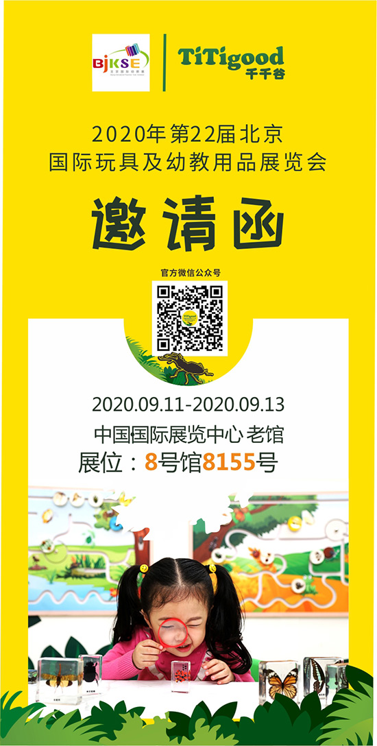 2020年9月11日至13日,千帆攜自主品牌“TiTigood千千谷”兒童自然科學標本等系列產(chǎn)品參加第22屆北京國際幼教用品展覽會。誠摯的邀請您蒞臨展位現(xiàn)場參觀咨詢。